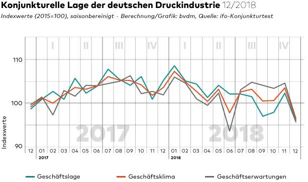 De stemming onder Duitse drukkers in december 2018 was precies het omgekeerde van het jaar ervoor; negatief.