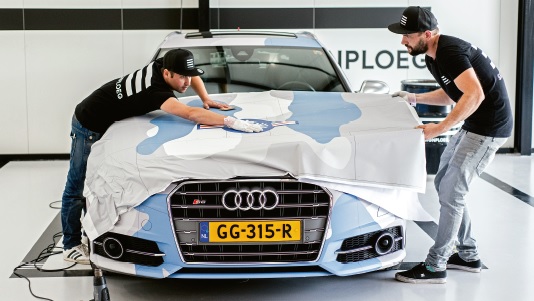 De redactie benaderde ook een lokale carwrapper, Signploeg in Amersfoort, om te vernemen of zij naast het 'gewone bedrijfswagen beletteren' ook de trend van bolides mooier maken bemerken. 'Onze klanten zijn meestal autoliefhebbers en vinden het leuk om in een nét even andere auto te rijden,' zegt Richard Todd, directeur van Signploeg en het er aan verwante Reclamestal. In het artikel in PRINTmatters toont Todd een serie van de kunstwerken waarmee hij zijn klanten de weg op stuurt. Eén van de opvallend gewrapte auto's is de Audi A6 van Maarten van der Heide van Restaurant RAUW. Hij heeft zijn A6 volledig laten wrappen in een design dat is geïnspireerd op de Amerikaanse F16-viper. Meestal staat de auto prominent voor het pand waarin RAUW is gevestigd.