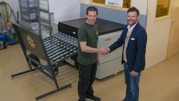 Foto: De Luxe-configuratie met medewerkers Henk Huitsing (links) en André Kuik (rechts) van de prepress- en ict-afdeling.