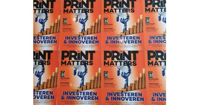 BAM! 108 pagina’s op de mat en allemaal over print en sign. De deze week verschenen editie van PRINTmatters benadrukt investeringen in innovatie in de sector. Bankbiljettendrukker Koninklijke Joh. Enschedé kocht een nieuwe Koebau Giori De La Rue-pers en stapt in print to web, VOB plaatst twee loeigrote drukpersen en displaymaker Elwe draait 24/7, dankzij een robot.